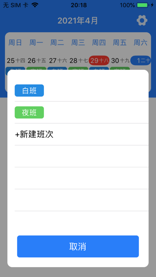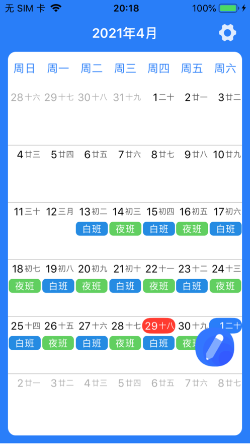 2、立即展现在日历中,一目了然,一天之中能够分配好几个班次;